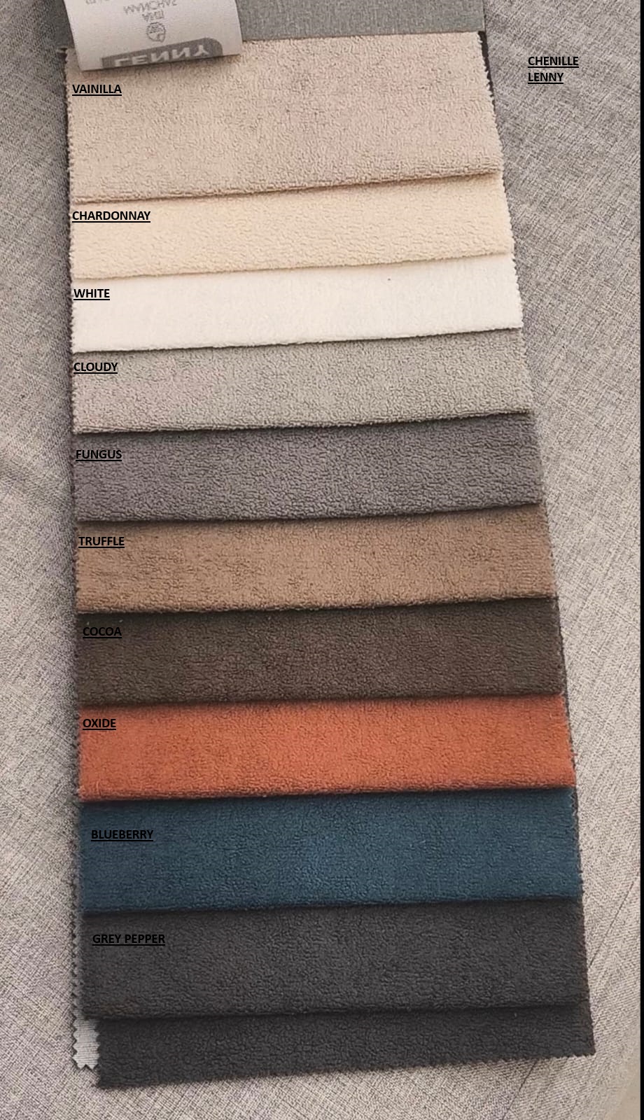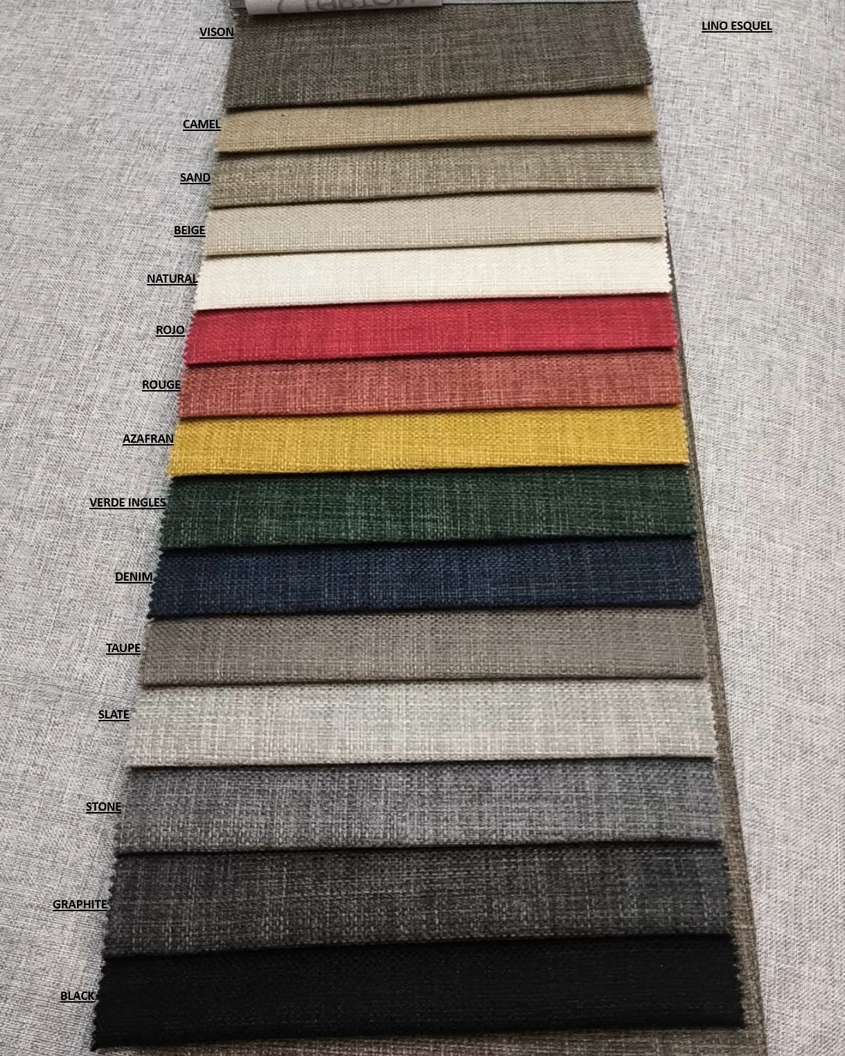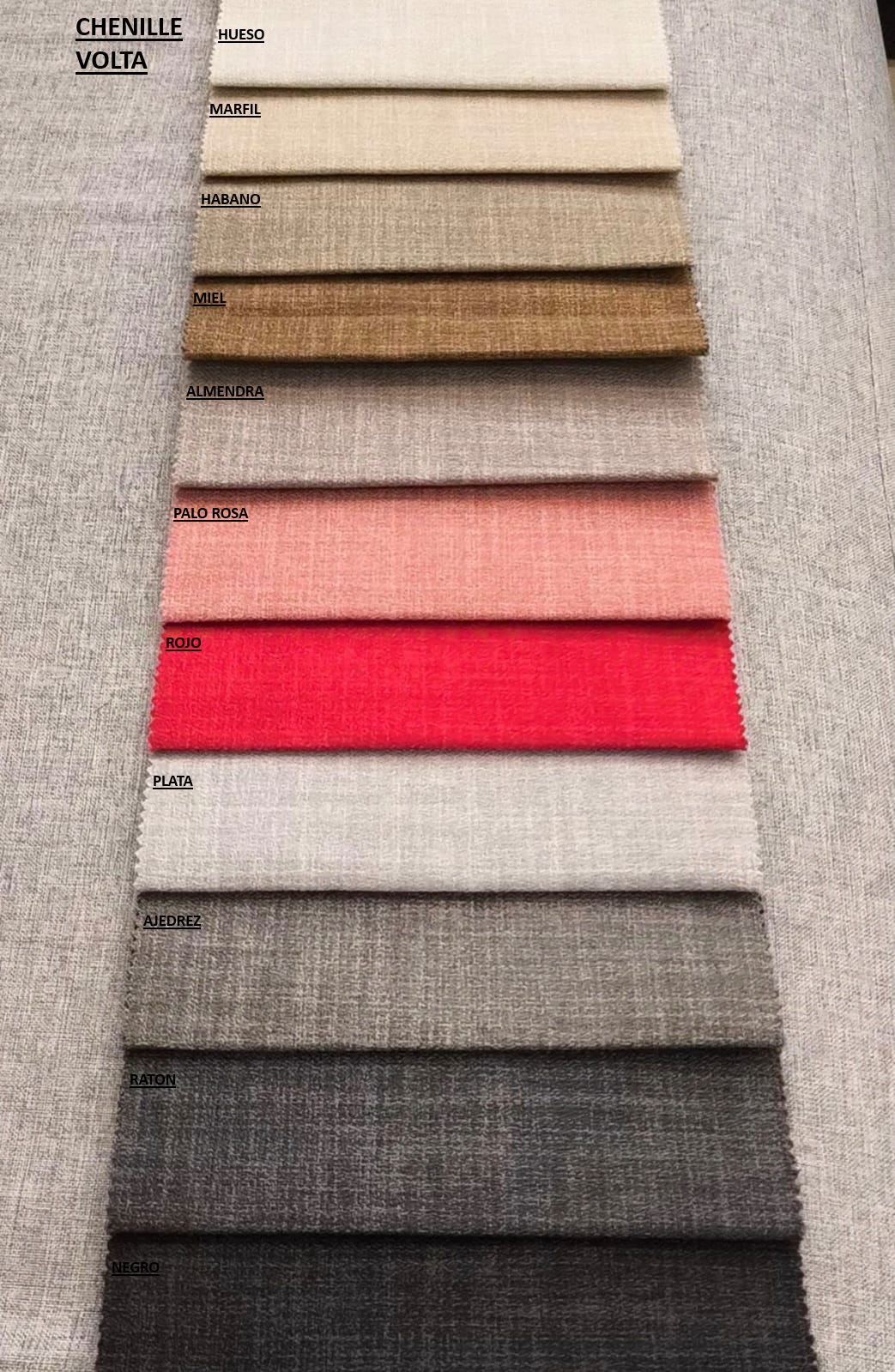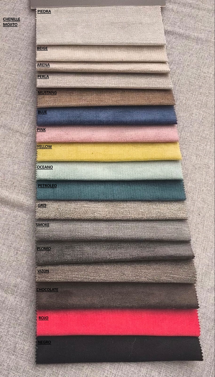 Chenille VOLTA (OFERTA) Pana DIVA (oferta) Lino ESQUEL (oferta) Lino GEA antimanchas ( 25% ) Lino MAUI antimanchas ( 25% ) Lino SPAZIO antimanchas ( 25% ) Pana JAGUAR antimanchas (25%) Pana DONN antimanchas ( 25% ) Chenille lenny (antimanchas) 25% Chenille BEST antimanchas (25%) Chenille MOJITO (antimanchas) 25% Chenille MECHA antimanchas ( 25% ) Chenille OSLO (antimanchas) 25% Cuerina gamuzada (lago puelo) Panne chapelco (antimanchas) ( 25% ) Lino MIYAKE (antimanchas) 25% Boucle ( 45 % ) Lino CIPRESES ( 25% ) Tussor (fundas) Jacquard lola fajas ( 35% )